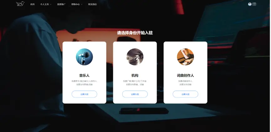 首頁:音樂人認證、詞曲作者、已入駐音樂人、已入駐詞曲作者、熱門原創(chuàng)
