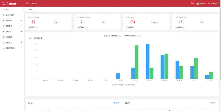 音樂人管理:注冊認證、認證審核、作品上傳、作品審核、授權(quán)簽約、藝人結(jié)算
